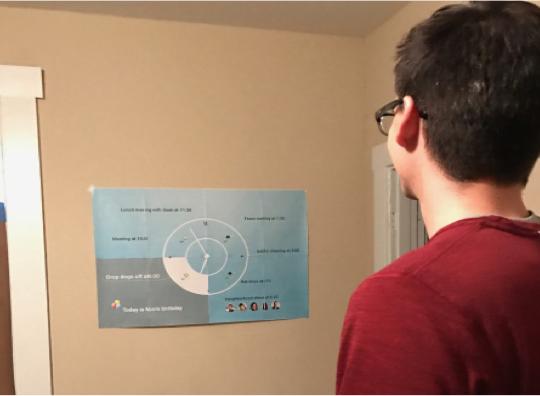 There can be a better solution with the technology of smart homes, smartphones, digital calendars, intelligent digital personal assistants, and smart syncing capabilities (the Internet of Things). The solution could be a program that syncs to all devices, learning patterns, and habits and then assists in life. This invention would require the installation of OLED screens in critical places to help in the office, kitchen, and foyer. Thin and wireless, the screens would not affect a home's aesthetic or take up extra space. When a person is helped with daily tasks, unexpected scenarios decrease, causing a less chaotic life, lowered anxiety, and a more efficient lifestyle.