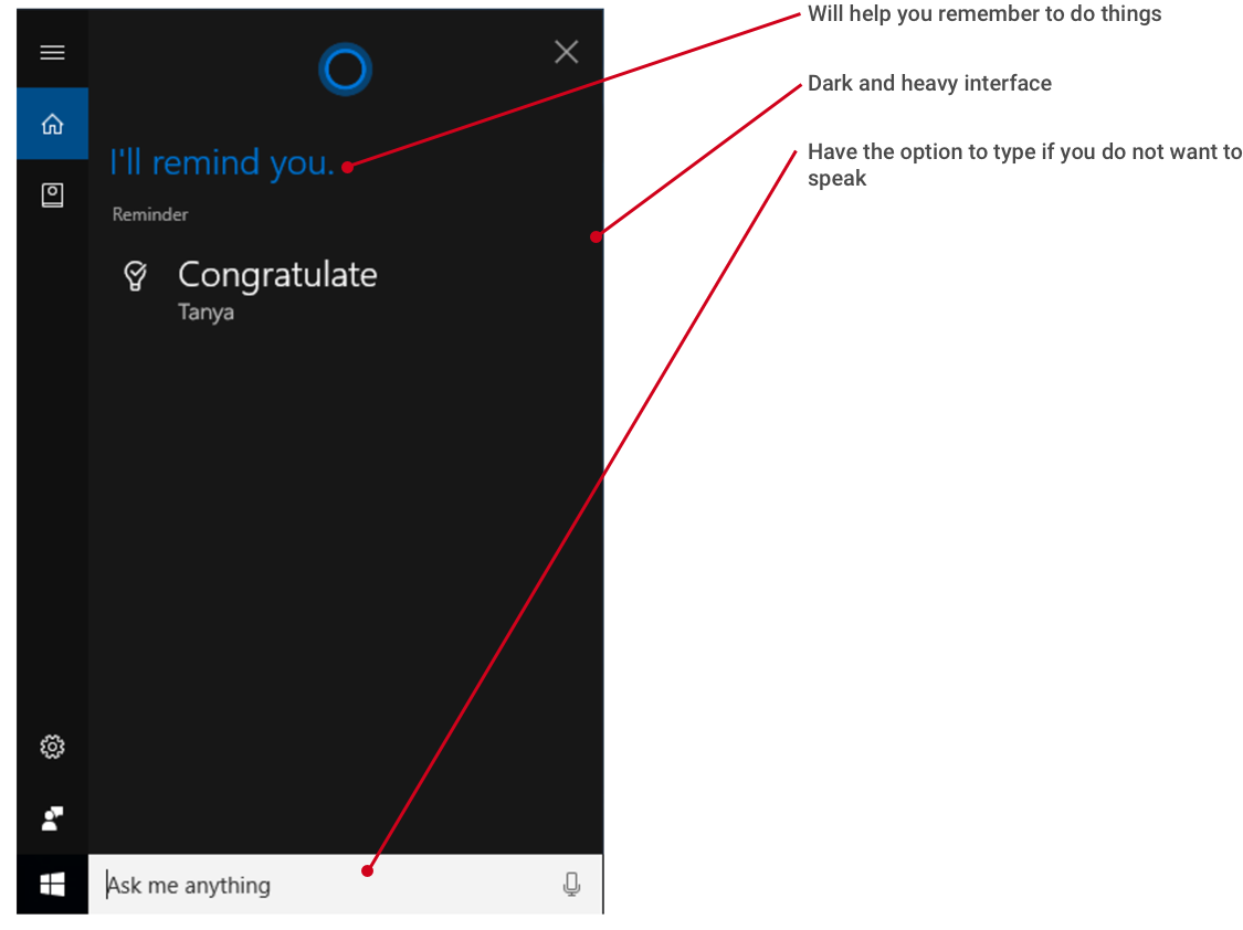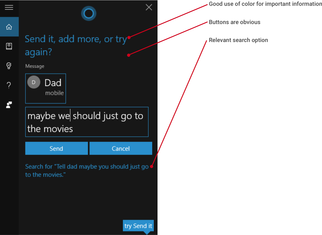 Good: Cortana continually learns about its user so it can eventually anticipate needs.