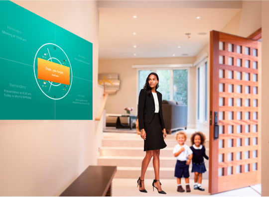 Cognitively reminding a person is one of the best ways to ensure they complete a task; in a test done to remind individuals of an appointment, a simple sticky note increased compliance by 16% (Milkman, Katherine L. 2012). "There are several mechanisms through which the sequence of events initiated by the sticky note may increase goal attainment. One mechanism is cognitive: by associating a future cue (the date written on the sticky note) with a plan of action (attending the appointment), individuals who have formed implementation intentions are more likely to remember to follow through on their plan" (Milkman, Katherine L. 2012). "Psychological studies have shown that the memorability of an experience is influenced greatly by the cognitive operations engaged during initial encoding of that experience" (Wagner AD, DL Schacter, M Rotte, W Koutstaal, A Maril, AM Dale, BR Rosen, and RL Buckner. 1998). A person can effortlessly remember tasks and items throughout their day through cognitive reminders via an intelligent screen in a home, phone, computer, or car.