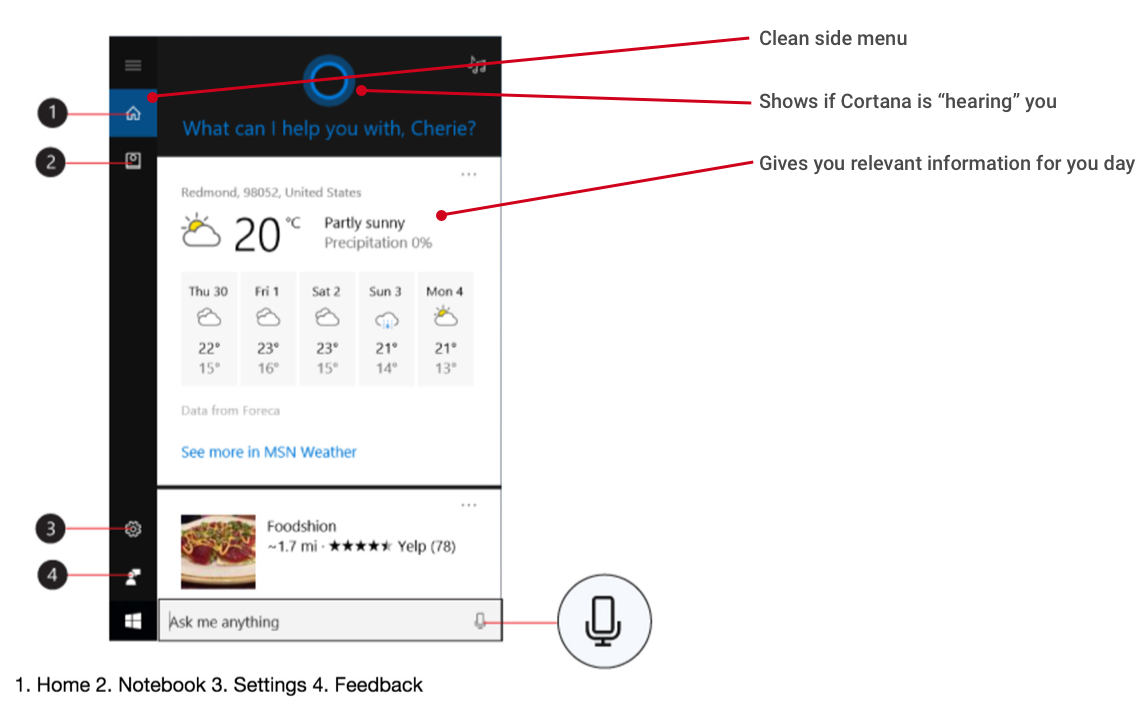 Cortana is a virtual assistant. The more you use Cortana, the more personalized your experience will be.