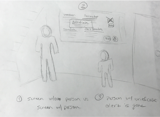 Met with six people who fit the demographic disucssed in the justification. Gave them blank screens in key areas of the house and asked them to co-design what they would find essential or desirable in this space.