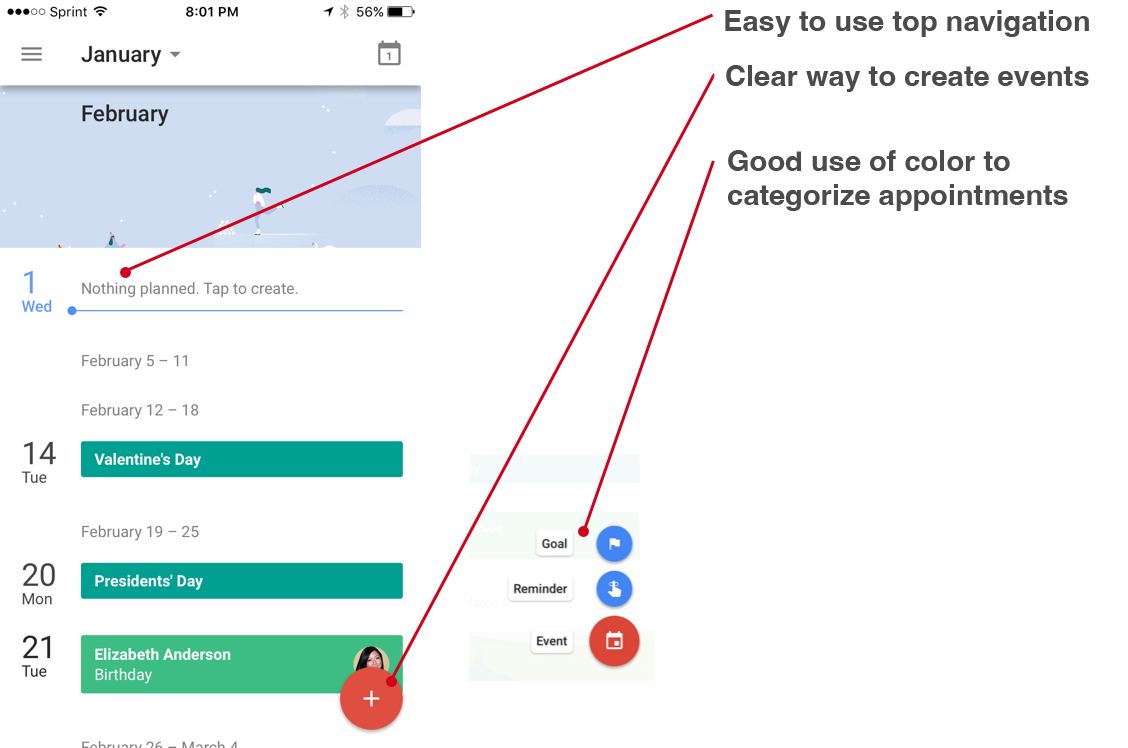 Bad: Compatibility is lacking for non-Google Calendar users. It will not allow you to add calendar events from non-primary email. Works best with Android phones.