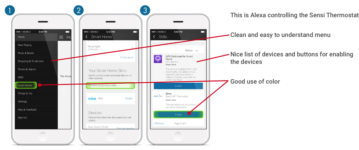 Good: Follows your voice throughout rooms, intuitive, easily controls smart devices throughout your home, successful in using voice commands and puts items on your to do list/reminds you to do things.