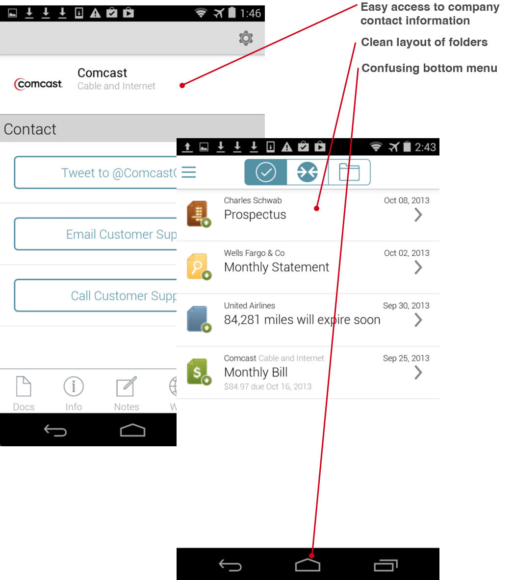 Good: Easy to pick and add companies to your list. You can scan important documents to your account.